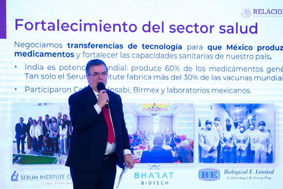“¿Por qué es importante? La India produce el 60% de los medicamentos genéricos globales y produce un tercio de todas las vacunas globales, es la potencia que puede apoyarnos para abasto de medicamentos, mejores precios y que tengamos producción en México, esa es la lección de los últimos dos años.