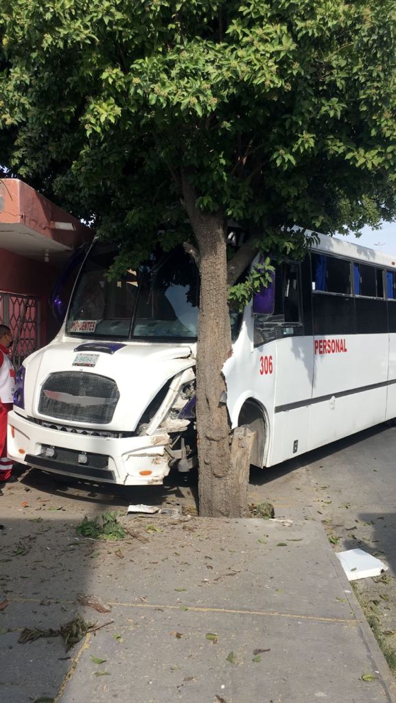 El chófer de un autobús que transportaba personal de «La Pequeña», quien perdiera el control al conducir en exceso de velocidad, se impactó contra un árbol al querer esquivar un vehículo, según información de los elementos de vialidad.