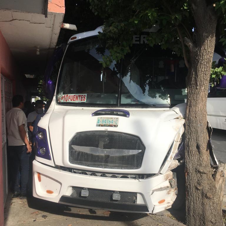 El chófer de un autobús que transportaba personal de «La Pequeña», quien perdiera el control al conducir en exceso de velocidad, se impactó contra un árbol al querer esquivar un vehículo, según información de los elementos de vialidad.
