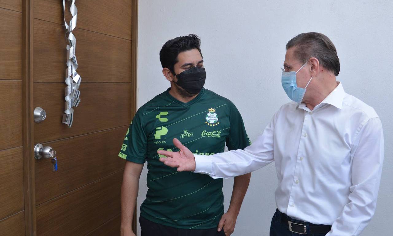Durango, Durango a 09 de abril de 2022. – José Rosas Aispuro Torres, Gobernador de Durango, realizó la entrega de la vivienda con valor de más de 1.5 millones de pesos a: Ángel Samuel de la Torre Esparza, quien resultó afortunado ganador del sorteo de una casa, como parte de los estímulos que realiza el gobierno del Estado de Durango a través de la Secretaria de Finanzas, a los contribuyentes que van al corriente en sus responsabilidades.