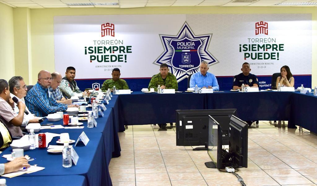 Torreón, Coahuila a 18 de abril de 2022.- Durante la Décima Sexta Reunión Semanal de Seguridad, presidida por el alcalde Román Alberto Cepeda y realizada en las instalaciones de la Policía Municipal, se dio a conocer que la incidencia delictiva continúa a la baja en Torreón y esta semana arroja cifras de mayor impacto.