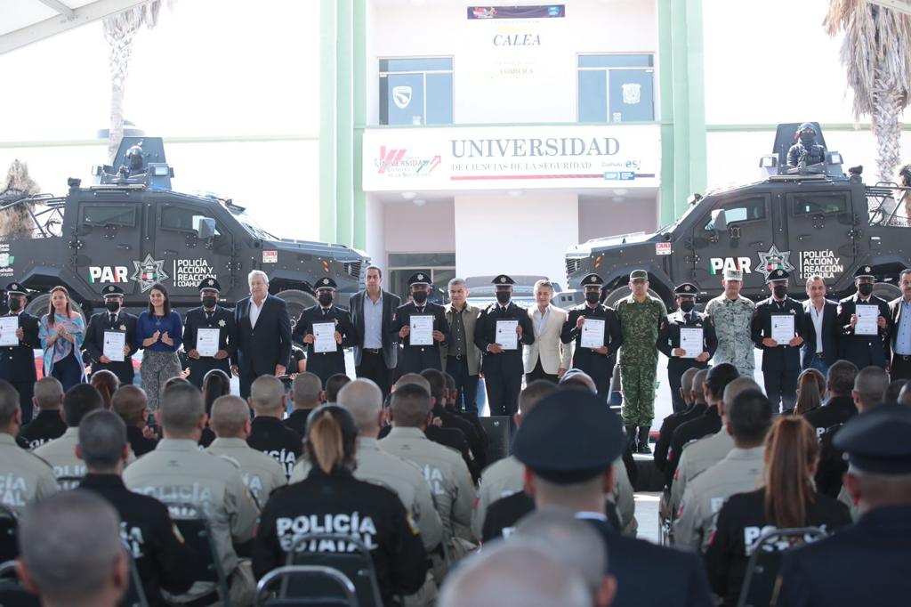 La titular de la Secretaría de Seguridad Pública del Estado, Sonia Villarreal Pérez, informó que se logró la graduación de la Segunda Generación de la Policía Estatal de la Universidad de Ciencias de la Seguridad, y la Sexta Generación durante la Administración del gobernador Miguel Riquelme, además de la inversión de 32 millones de pesos para la entrega de patrullas.