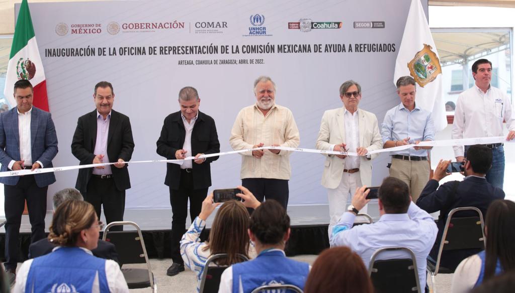Arteaga, Coahuila de Zaragoza; a 21 de Abril de 2022.- El gobernador Miguel Ángel Riquelme Solís, acompañado por Alejandro Encinas, Subsecretario Federal de Derechos Humanos, Población y Migración, inauguró las oficinas de la Representación de la Comisión Mexicana de Ayuda a Refugiados (COMAR) en Coahuila.