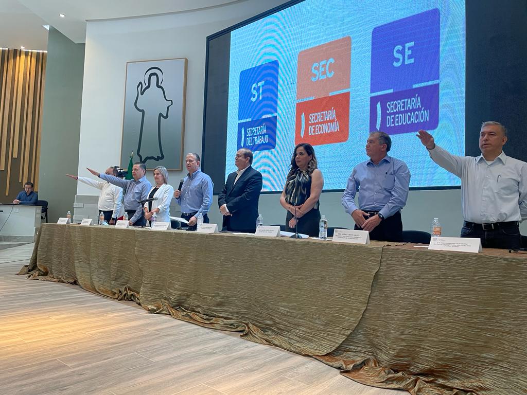 Piedras Negras, Coahuila de Zaragoza; a 21 de Abril de 2022.- Los Secretarios estatales de Educación, Francisco Saracho Navarro; Economía, Claudio Bres Garza, y del Trabajo y Previsión Social, Nazira Zogby Castro, encabezaron la instalación del Consejo de Vinculación Universidad-Empresa de la Región Norte.