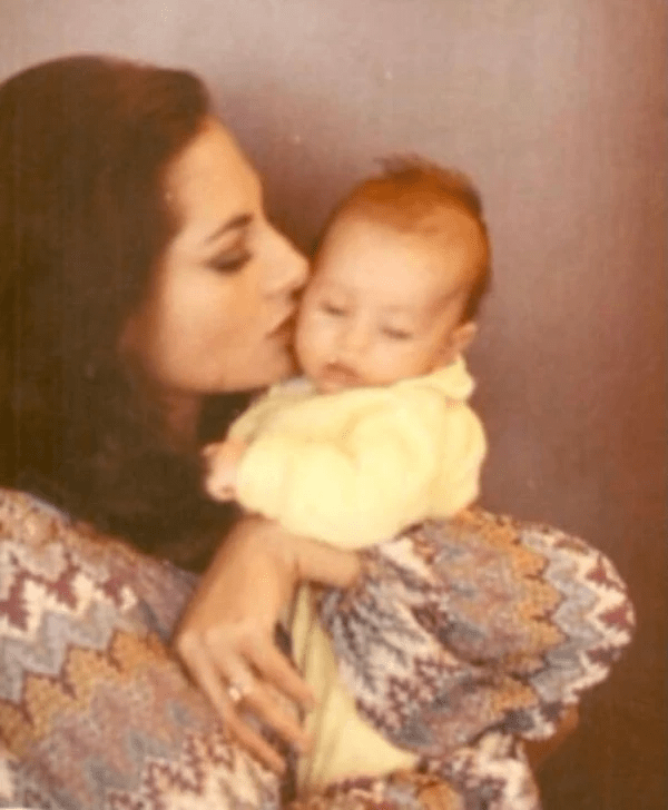 Paulina compartió una fotografía de Susana Dosamantes, de su archivo personal, en el que se ve a la protagonista del melodrama clásico, Amalia Batista, cargando en brazos a quien en el futuro sería conocida como La chica dorada, de apenas unos meses.