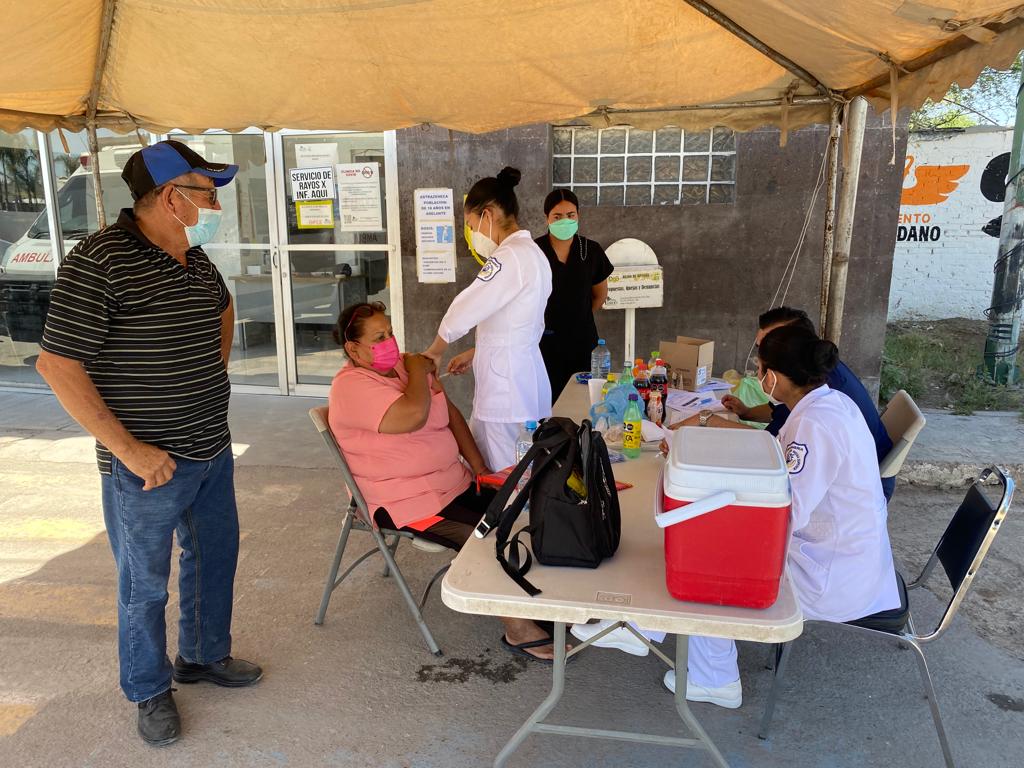 En esta jornada de vacunación, en la que participan los tres niveles de gobierno, el municipio de Lerdo se encarga de apoyar con mesas, agua, y traslado para la población.