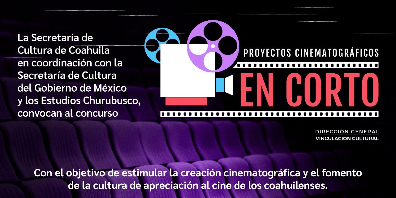 Saltillo, Coahuila de Zaragoza; a 06 de Mayo de 2022.- El Gobierno del Estado de Coahuila, a través de la Secretaría de Cultura de Coahuila y en coordinación con la Secretaría de Cultura del Gobierno de México y los Estudios Churubusco, convocan al concurso “PROYECTOS CINEMATOGRÁFICOS EN CORTO”.
