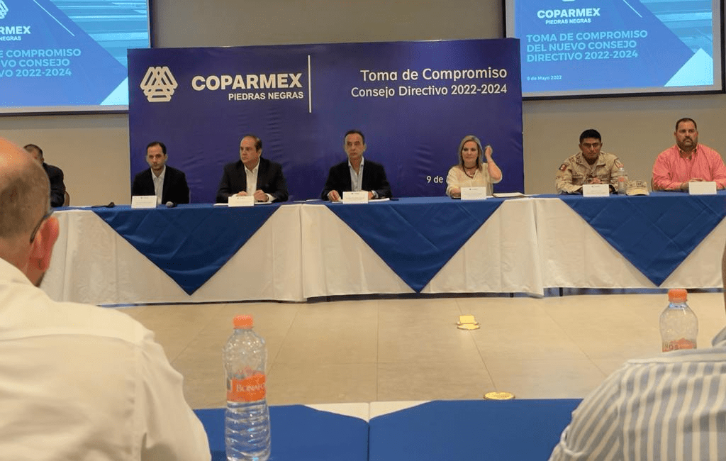 Piedras Negras, Coahuila de Zaragoza; a 12 de Mayo de 2022. – En representación del gobernador Miguel Ángel Riquelme Solís, el Secretario de Economía de Coahuila, Claudio Bres Garza, atestiguó la toma de protesta del Consejo Directivo 2022-2024 de la Confederación Patronal de la República Mexicana.