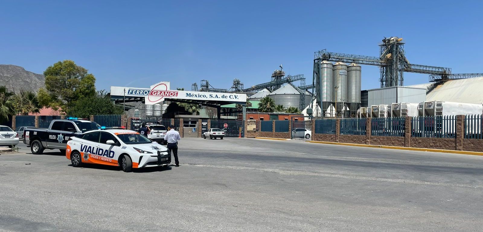 Torreón, Coahuila a 16 de mayo de 2022.- Sobre los hechos ocurridos esta mañana en el Parque Industrial Ferropuertos, Juan Francisco Martínez Chavarría, comandante de Bomberos Torreón, señaló que colapsó un silo con granos para consumo animal, perteneciente a la compañía denominada Simón Bolívar.