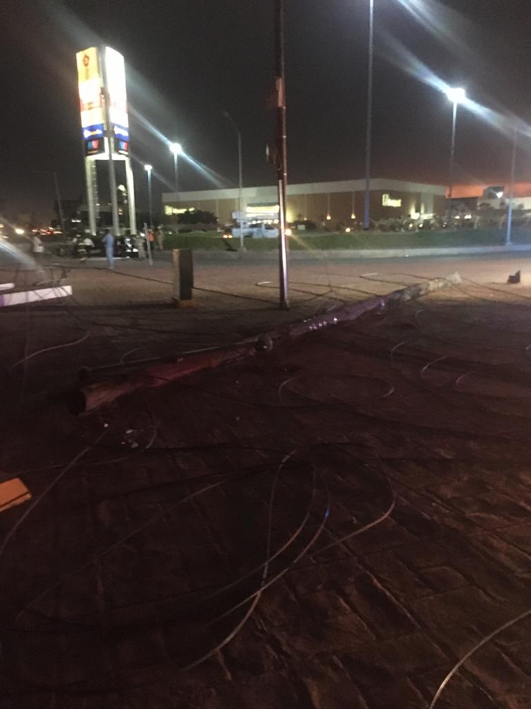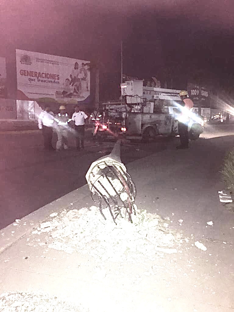 Un motociclista que conducía por periférico Raúl López Sánchez fue arrollado por un poste de madera de la CFE, que cayó a consecuencia de los vientos tempestuosos que se registraron hoy por la tarde en la Comarca Lagunera.