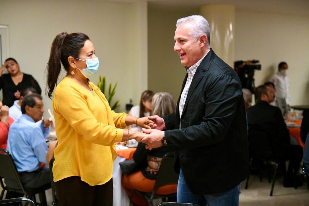 Torreón, Coahuila a 18 de mayo de 2022.- En el marco de los festejos por el día del maestro, el alcalde de Torreón Román Alberto Cepeda se reunió con el gremio magisterial perteneciente a la sección 35 y sección 38 del Sindicato Nacional de Trabajadores de la Educación (SNTE), a quienes felicitó por sus años de servicio y entregó reconocimientos por su labor.