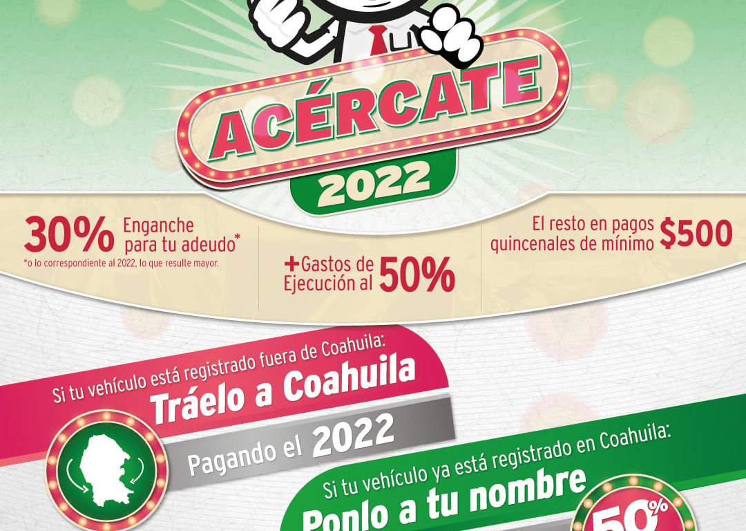 En el caso de que tu vehículo esté registrado fuera del Estado, ¡tráelo a Coahuila! y sólo paga el Ejercicio Fiscal 2022, pues se condona al 100 por ciento de ejercicios anteriores”, añadió Díaz González.