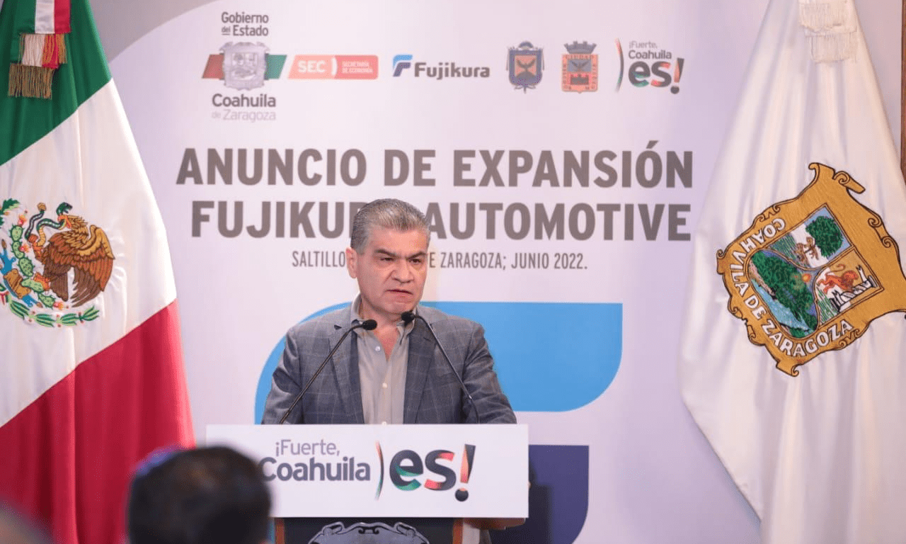 Saltillo, Coahuila de Zaragoza; 02 de Junio de 2022.- El gobernador Miguel Ángel Riquelme Solís anunció hoy la doble inversión que realizará este año Coahuila la empresa japonesa Fujikura, que invertirá 21.8 millones de dólares e impulsará fuertemente al empleo con la creación de 4 mil 257 nuevas plazas laborales.