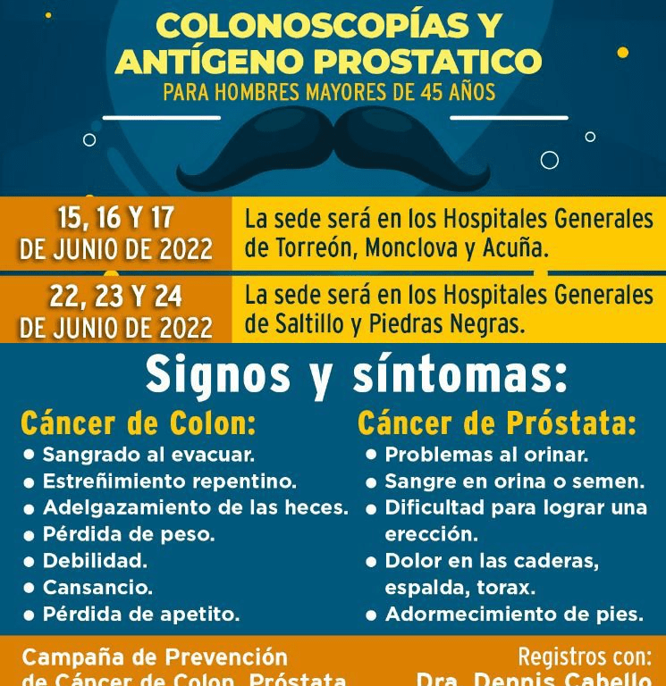 Saltillo, Coahuila de Zaragoza; a 07 de Junio del 2022.- En el marco de la celebración del Día del Padre, el Secretario de Salud del Estado, Roberto Bernal Gómez, anunció que como parte del programa estatal «Cambiando Vidas» y en conjunto con «Mejora Coahuila», la Secretaría de Salud del Estado realizará la Jornada Estatal de Colonoscopias, Vasectomías y Detección de Antígeno Prostático para hombres mayores de 45 años.