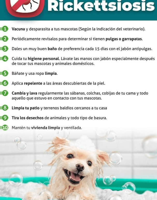 Por otro lado, recordó a la ciudadanía tener presente los síntomas de la rickettsiosis, que son: Fiebre superior a los 38 grados centígrados, dolor de cabeza repentino o intenso, malestar generalizado que provoque postración y dolores musculares.