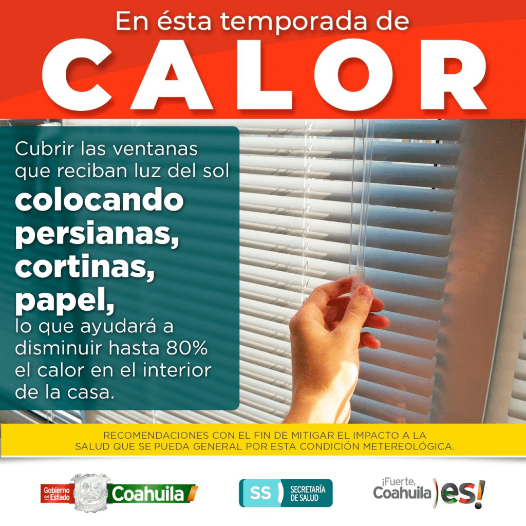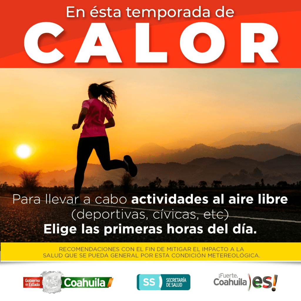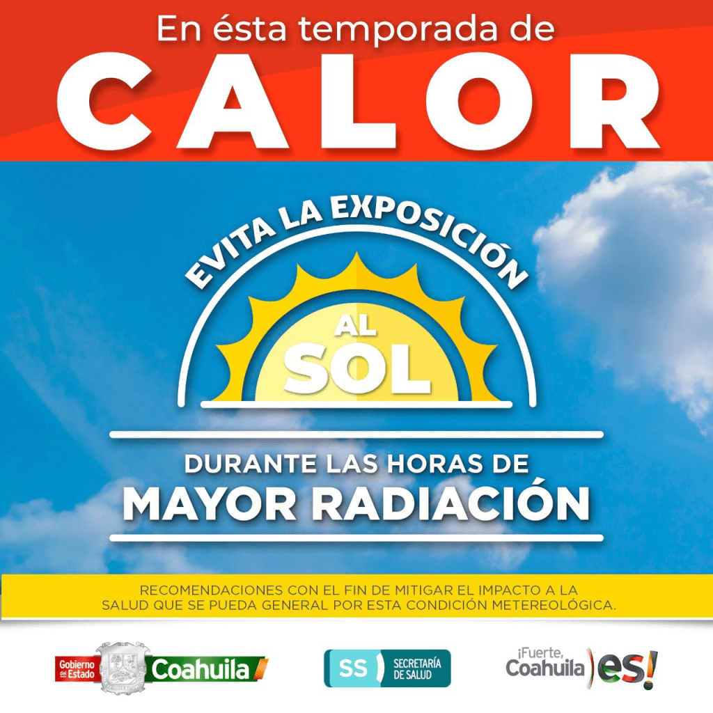 Saltillo, Coahuila de Zaragoza; a 09 de Junio del 2022.- El Gobierno del Estado, a través de la Secretaría de Salud de Coahuila, pidió a la población seguir una serie de recomendaciones para evitar golpes de calor y demás padecimientos físicos ocasionados por las altas temperaturas que se han registrado en los últimos días en las distintas regiones de Coahuila.