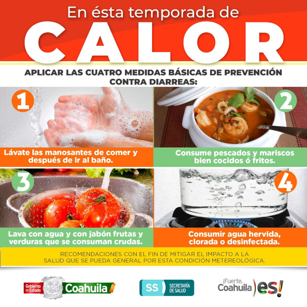 Para prevenir este malestar, Bernal Gómez recomendó permanecer en lugares frescos, que estén a la sombra y ventilados; utilizar gorra o sombrero, lentes de sol, sombrilla y protector solar; lavar las manos frecuentemente con agua y jabón, antes de comer, servir y preparar alimentos, y después de ir al baño.