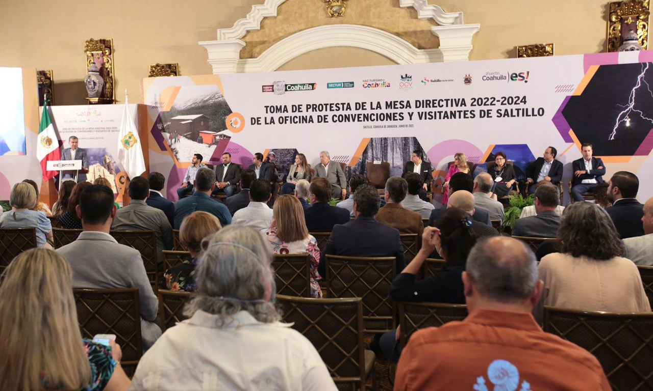 Al efectuar la toma de protesta de la Mesa Directiva Oficina de Convenciones y Visitantes de Saltillo (OCV) Saltillo 2022-2024, y ver la presentación del video promocional “Ven y Vívelo”, reafirmó su compromiso de fortalecer el turismo de Coahuila.