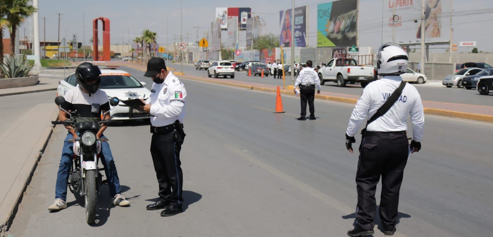 Torreón, Coahuila a 09 de julio de 2022.- La Dirección General de Vialidad y Movilidad Urbana de Torreón, trabaja con la aplicación de acciones preventivas para garantizar la seguridad vial, en especial, para la gran cantidad de operadores de motocicletas que circulan por las calles.