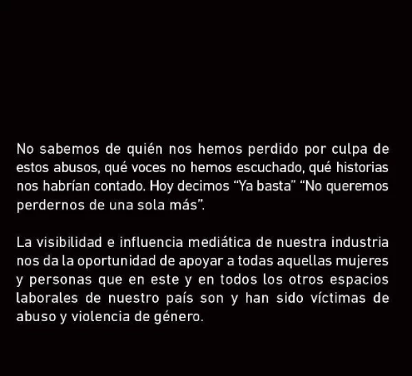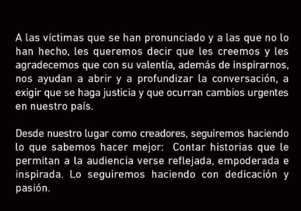 «A las víctimas que se han pronunciado y a las que no lo han hecho, les queremos decir que les creemos y les agradecemos que con su valentía, además de inspirarnos, nos ayudan a abrir y a profundizar la conversación, a exigir que se haga justicia y que ocurran cambios urgentes en nuestro país”.