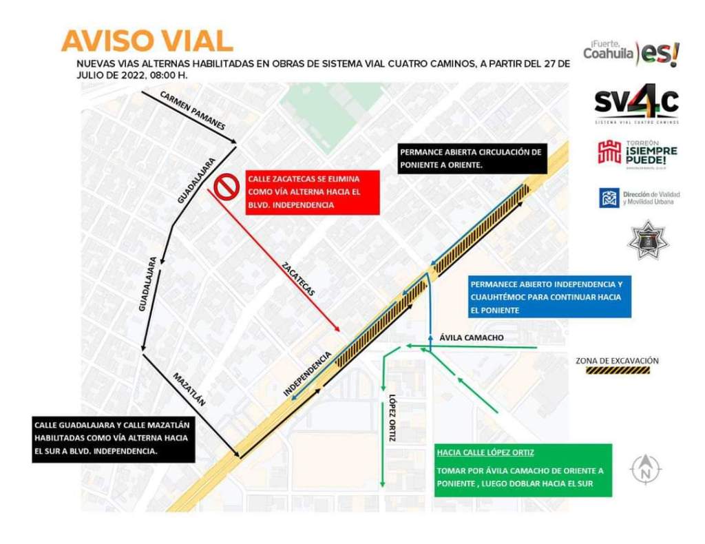 ✅ Para Blvd. Independencia, tráfico local toma hacia el norte por calzada Cuauhtémoc.