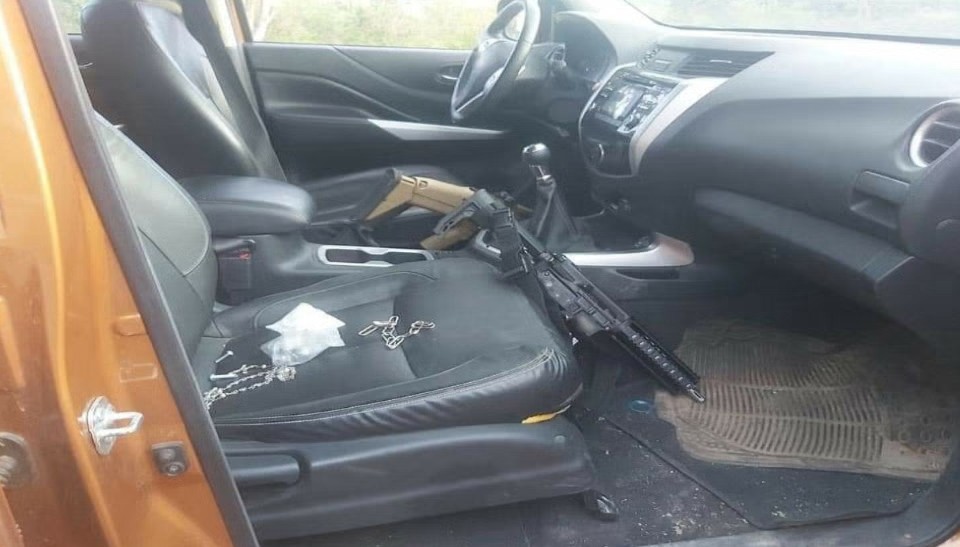 Al ser una zona de importante afluencia vehicular, tres unidades de la GN se aproximaron a las camionetas para preguntar a los tripulantes si requerían algún apoyo, percatándose de que en ambas unidades estaban a bordo personas armadas, por lo que inmediatamente efectuaron maniobras de seguridad cerrándoles el paso e impidiendo su huida.