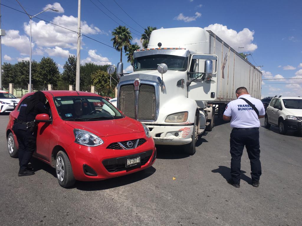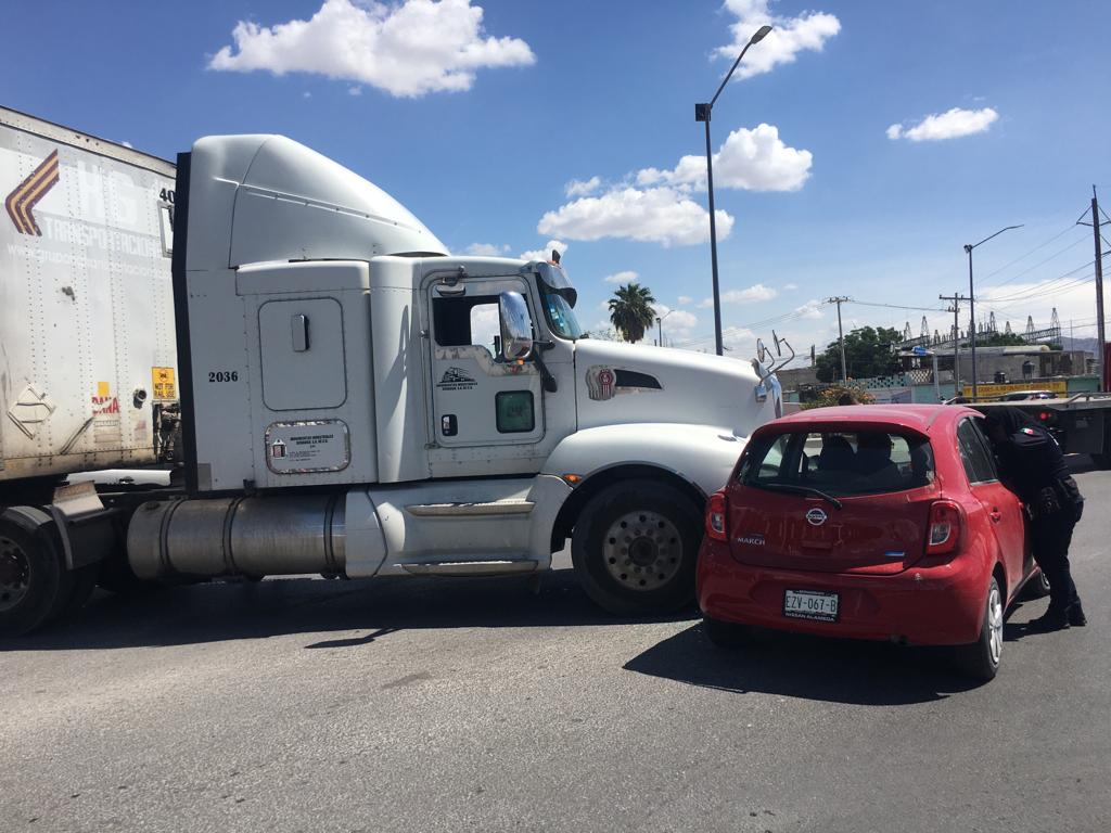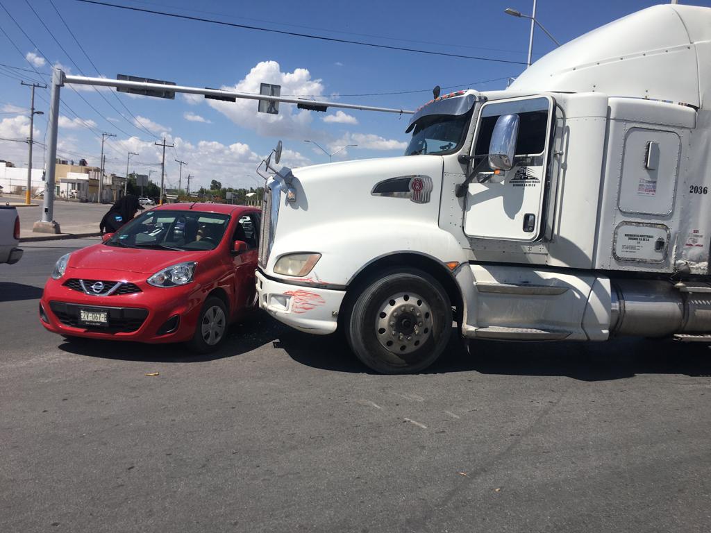Torreón, Coahuila a 13 de agosto de 2022. – Esta tarde alrededor de las 16:00 horas, un autómovil que se encontraba esperando su semáforo en verde, es impactado por tráiler que al parecer no vio el vehículo frente a su unidad.