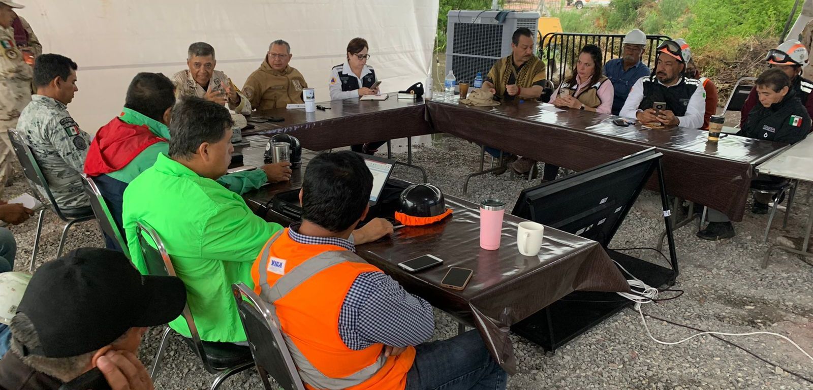 Los ingenieros dieron a conocer al Mando Unificado un plan preliminar, que incluye la perforación de 20 barrenos que permitirán inyectar concreto y sellar las galerías de la mina “Conchas Norte”, con el objetivo de disminuir el fujo de agua hacia “El Pinabete”.