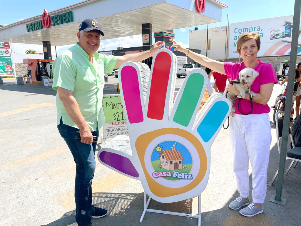 Durante el recorrido, tuvieron la oportunidad de colocar tapas de plástico en el contenedor en forma de mano que instaló el DIF de Torreón en este paseo, con el objetivo de recaudar fondos para los tratamientos, medicamento, comida y pasajes de niños con cáncer que son atendidos por la asociación civil Casa Feliz.