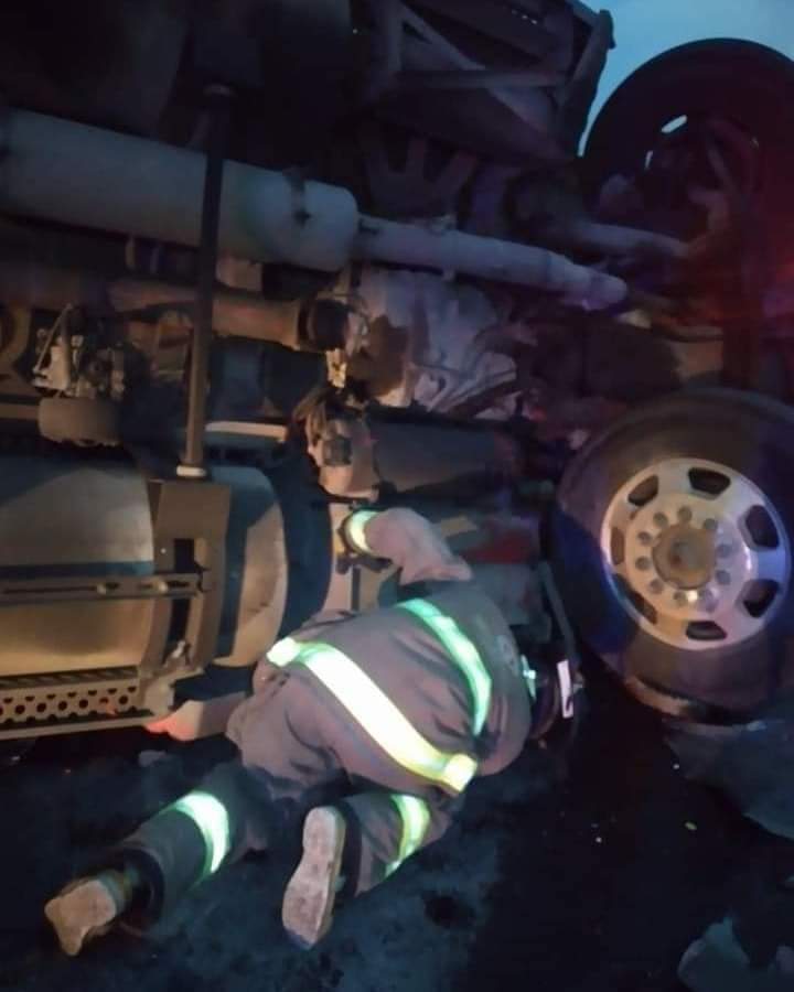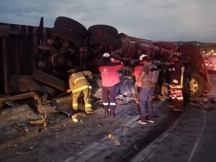 Fue necesario que el personal de rescate realizara maniobras en la estructura del camión para poder recuperar los restos de la víctima mortal de la volcadura.