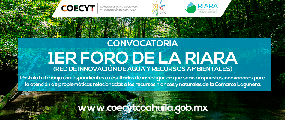 Saltillo, Coahuila de Zaragoza; a 19 de Septiembre de 2022.- El Consejo Estatal de Ciencia y Tecnología (COECyT) realizará el 26 de octubre en Torreón el Primer Foro de la Red de Innovación de Agua y Recursos Naturales (RIARA), para analizar novedosas propuestas de atención a la problemática que enfrentan los recursos hídricos y naturales de la Comarca Lagunera de Coahuila y Durango.