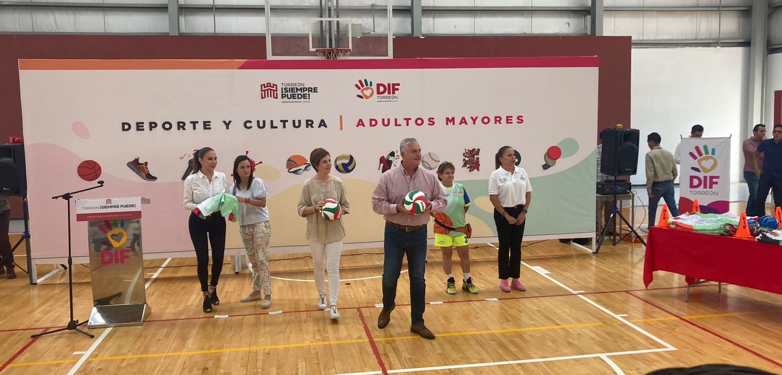 Torreón Coahuila a 22 de septiembre del 2022.- La mañana de este jueves 22 de septiembre se realizó un evento en el Multideportivo Oriente en donde el alcalde Román Alberto Cepeda en conjunto con el DIF Torreón realizaron la entrega de apoyos culturales para la práctica del deporte a diferentes equipos de adultos mayores que se encuentran en nuestro municipio.
