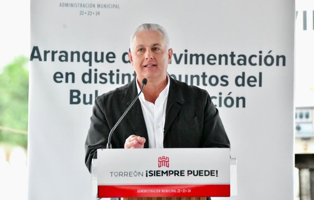 Con una inversión cercana a los dos millones de pesos, el Alcalde de Torreón, Román Alberto Cepeda González, puso en marcha trabajos de pavimentación en dos tramos del bulevar Revolución, con un total de siete mil metros cuadrados.
